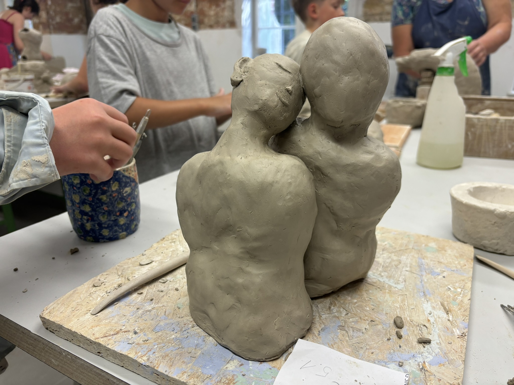 Die Schüler*innen werden von Künstler*innen beim Töpfern, Fotografieren, Malen, Drucken und Designen angeleitet. An einem Tag der "Kollwitz-Woche" besuchen die Schüler*innen