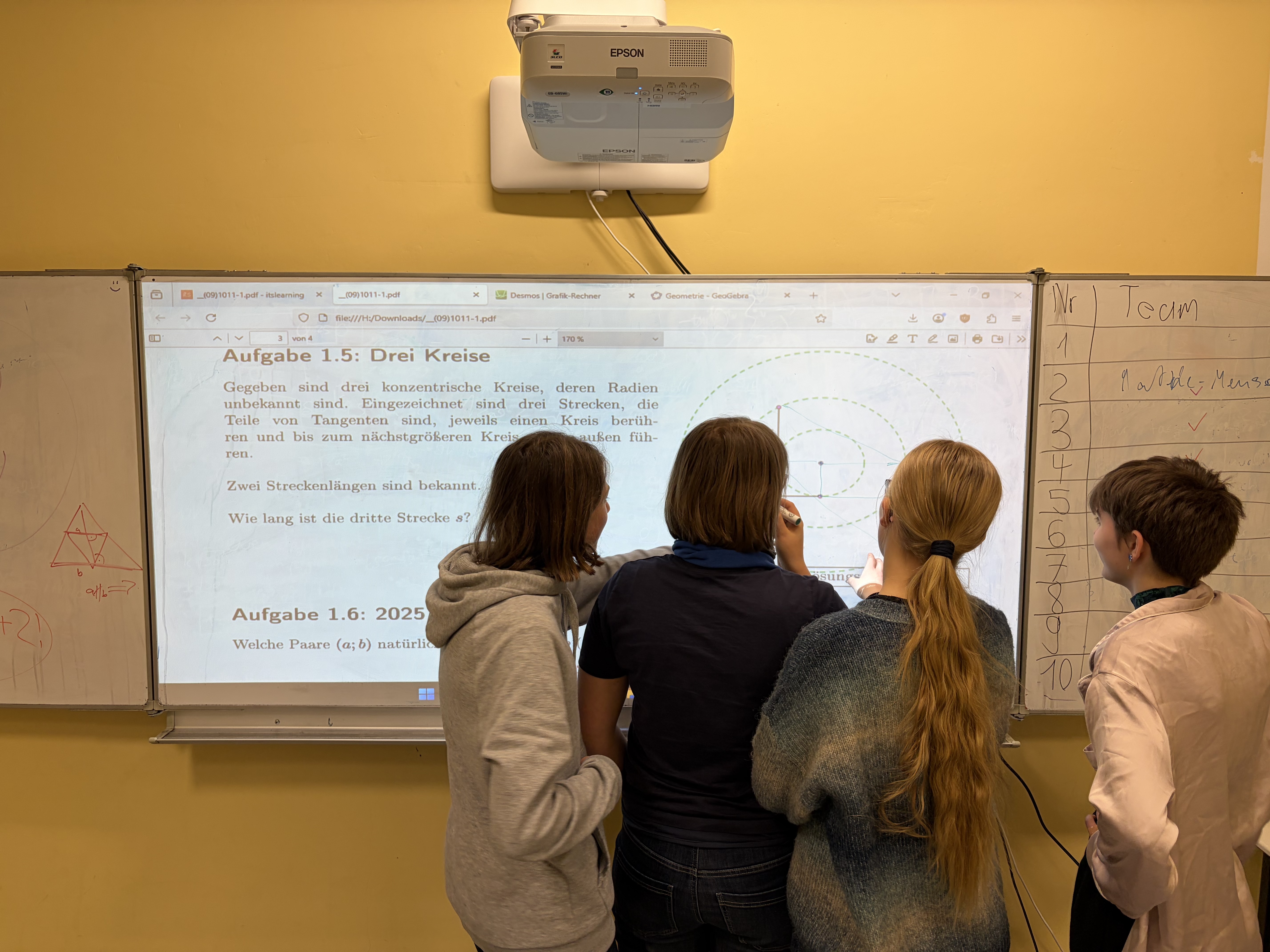 Auch das Oberstufen-Team „π/4“ um Oskar, Simon, Nadya und Ezra hat erneut sehr erfolgreich teilgenommen. Sie erreichten einen starken 13. Platz.