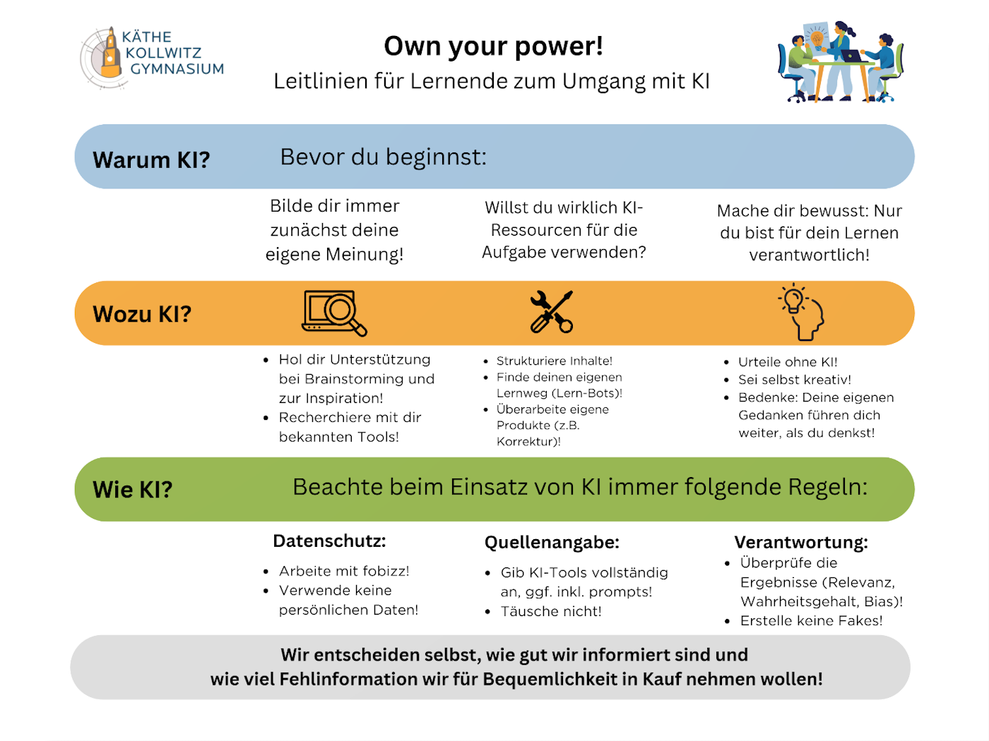 Für den Umgang mit KI am KKG haben wir diese Leitlinien für Lernende und Lehrende erarbeitet: